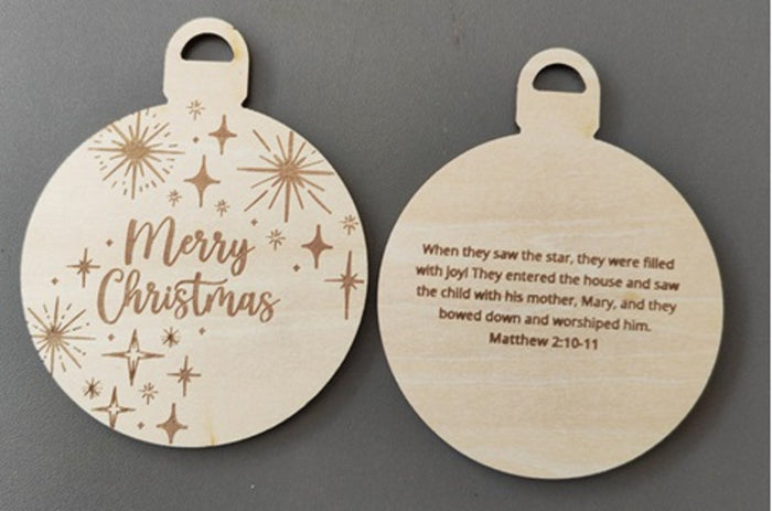 Each ornament is 85mm diameter, from 3mm thick wood, unvarnished, and customer laser-cut on both side. A string and wooden bead have been included to make it easy to hang at home!